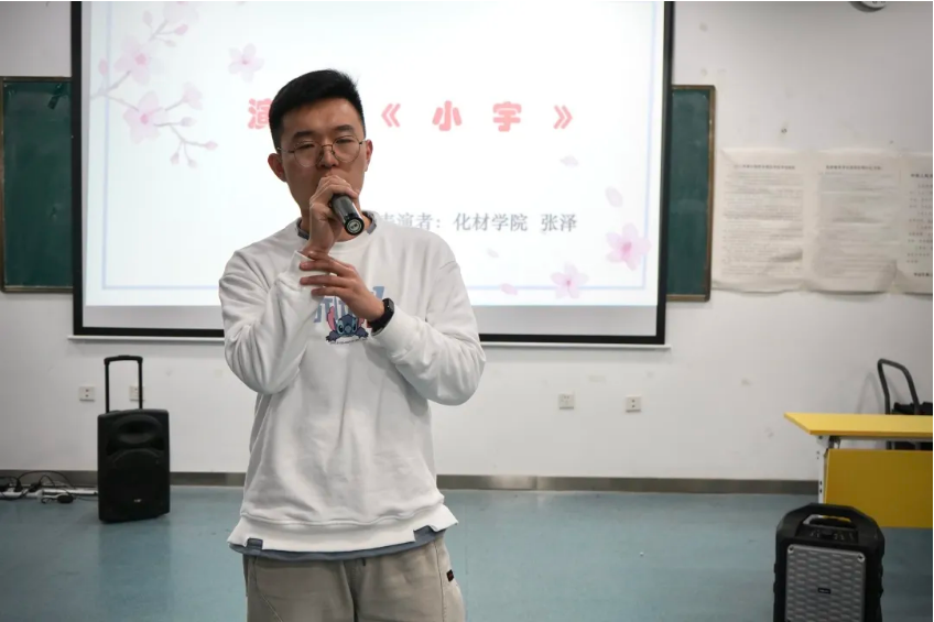 化学与材料科学学院的张泽同学为大家倾情演奏了张震岳的《小宇》,歌声温柔纯净,单纯的美好悄悄融化了大家的心。