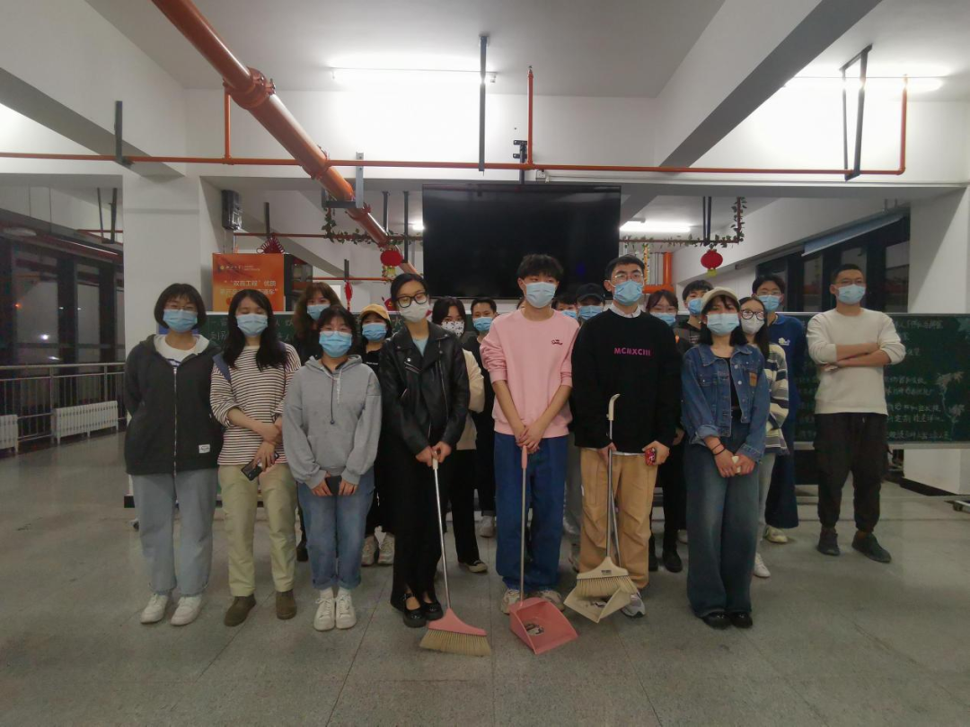 在活动开展过程中,同学们有序分配,通力合作,在硕博楼8-11层指定清扫区域开展工作,从与后勤集团工作人员耐心沟通、请教经验,到实地清洁打扫、完成消杀,同学们都以饱满的热情与认真的态度对待本次活动,发扬了不怕苦、不怕累的精神,显示出了热情积极的工作态度,通过大家的努力,我院负责的清扫区域焕然一新。