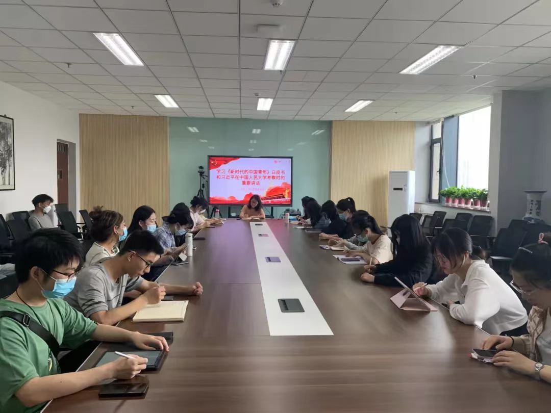 为深入学习贯彻习近平总书记关于青年工作的重要论述,引导和激励广大青年树立远大理想、热爱伟大祖国、担当时代责任、勇于砥砺奋斗、练就过硬本领、锤炼品德修为,在五四青年节即将到来之际,我院研究生会、学生会组织全体工作人员学习习近平总书记在中国人民大学考察时的重要讲话及国务院新闻办公室最新发布的《新时代的中国青年》。
