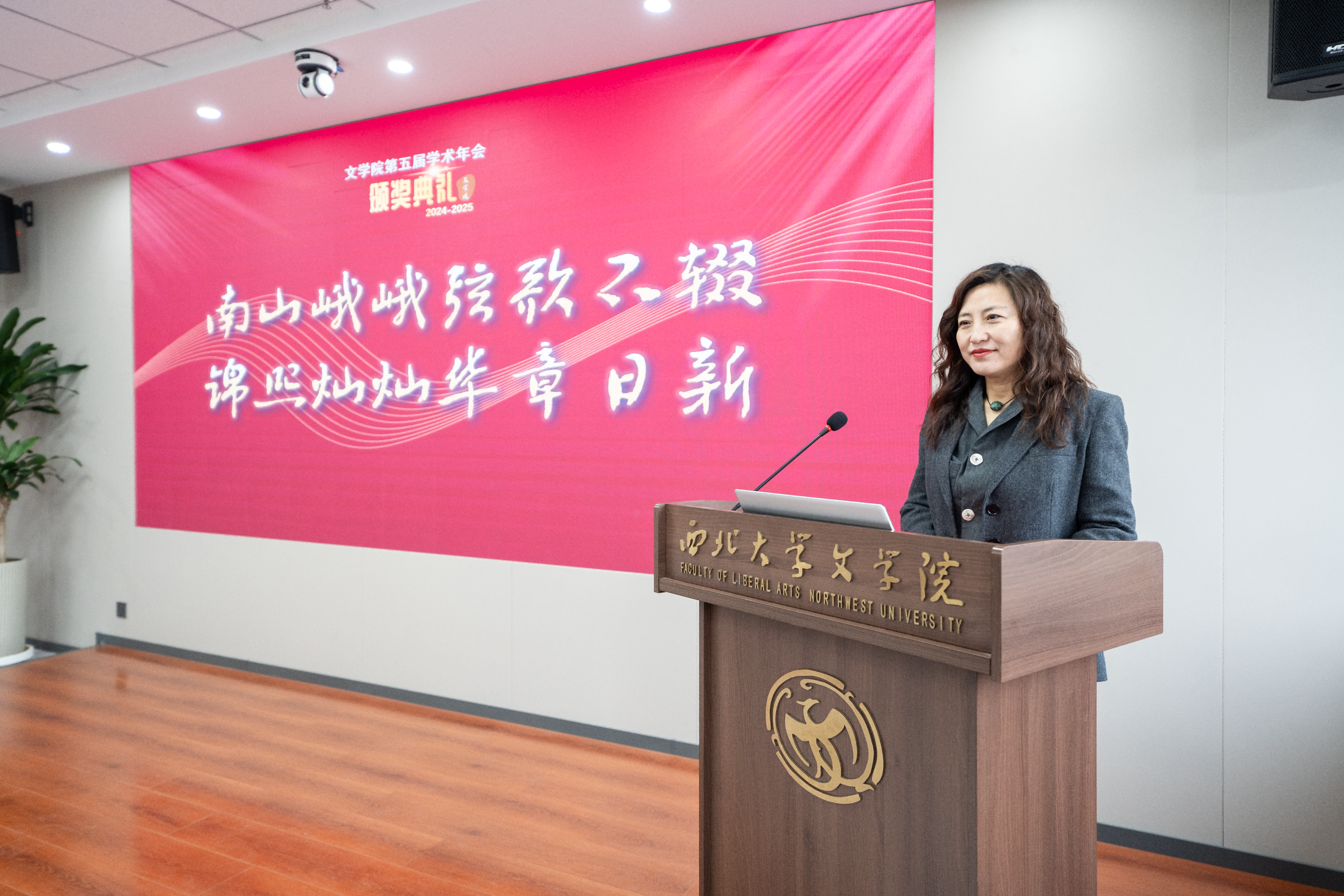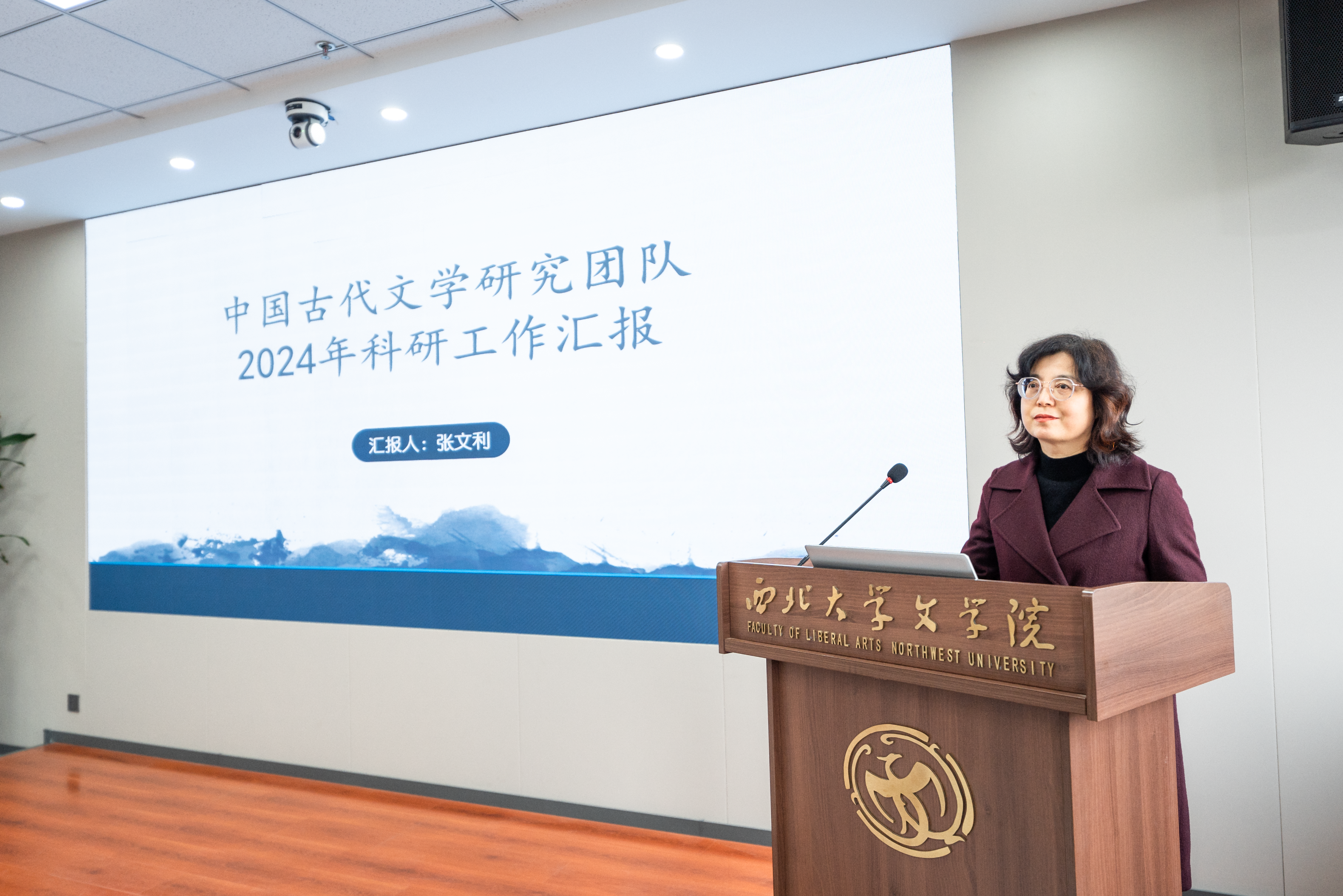 年会分为“工作汇报与颁奖仪式”和“师德大讲堂与学术报告”两个阶段。在第一阶段,文艺学研究团队、古典文献学研究团队、戏剧戏曲学研究团队、汉唐文学研究院研究团队、中国现当代文学研究团队等11个专业学术团队分别汇报了2024年度工作情况与2025年度工作计划。