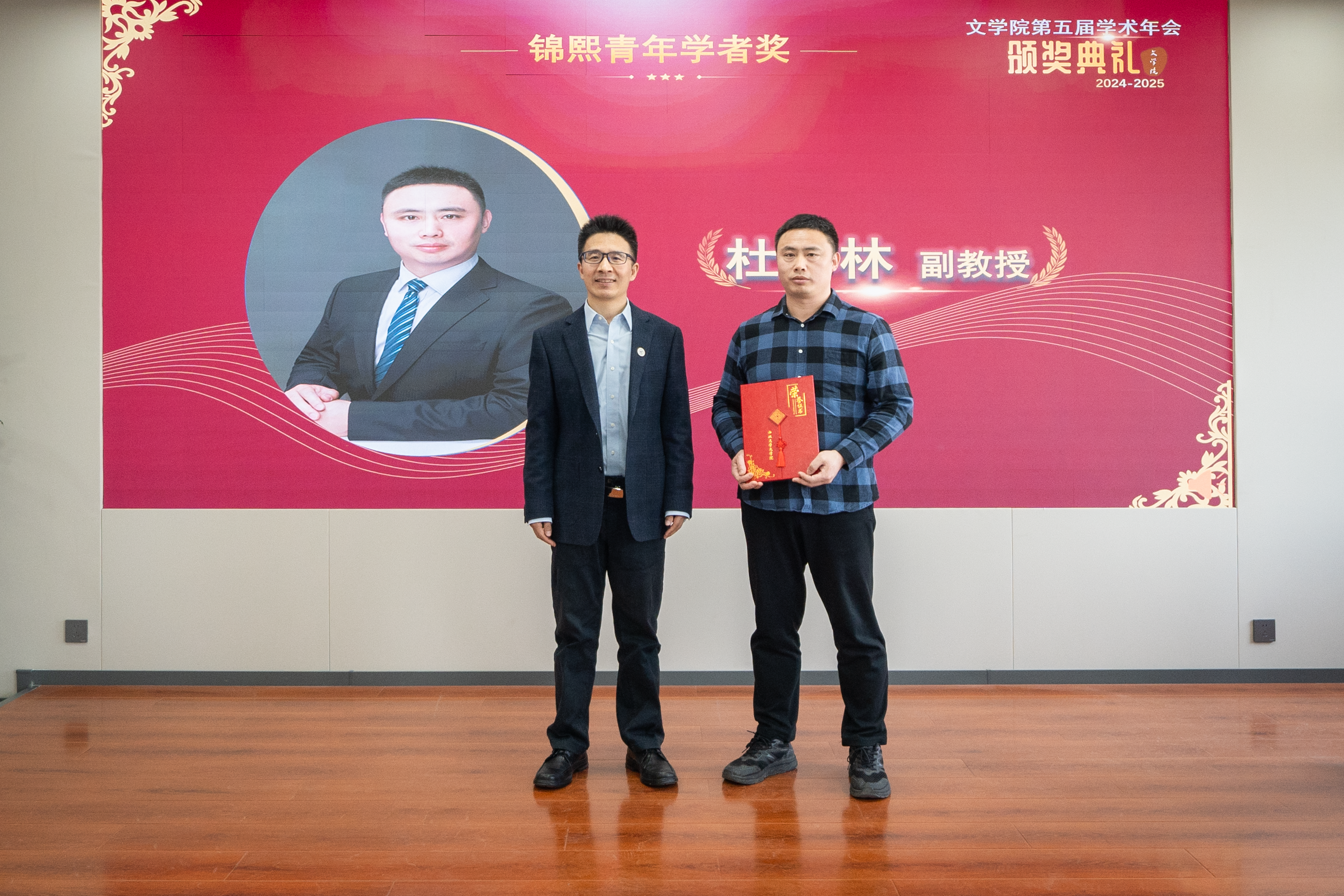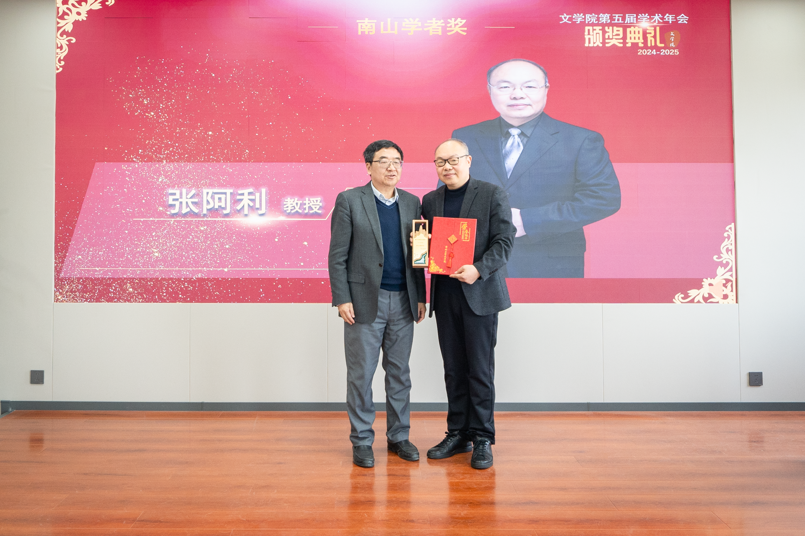 年会还举行了隆重的颁奖仪式。院党委书记姜宇宣读对2024年度优秀学术研究团队和学者的表彰决定,与会领导与职能处室负责人分别为76net必赢官网2024年度“锦熙”优秀学术研究团队奖、“锦熙”教学贡献奖、“锦熙”学术贡献奖、“锦熙”青年学者奖、“南山学者”奖、“南山杰出学者”奖等获团队及个人颁奖。
